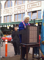A Rememberance to the Japanese American farmers at the Pike Place Market "Public Art in the Pike Place Market" Pike Place Market, Seattle, Washington USA Commissioned Artist Aki Sogabe photos courtesy of Sharon Sobie Seymour |